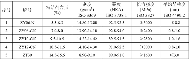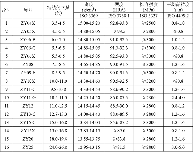 備注:粘結(jié)劑主要是鈷、鎳、鉻、鎳、碳化鉭/鈮、碳化鈦