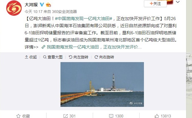 據(jù)介紹,墾利6-1油田是繼探明地質儲量千億方大型凝析氣田渤中19-6之后,中國海油在渤海獲得的又一重大發(fā)現(xiàn)。